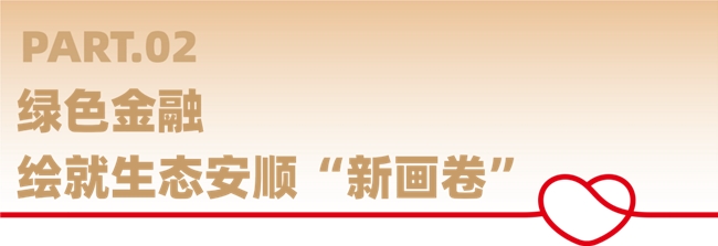 2025年,贵州银行安顺分行积极践行绿色发展理念,推进碳账户试点建设,累计提供绿色金融支持3.02亿元,惠及碳账户企业12户,助力实现“碳达峰、碳中和”;融入安顺市“一库双网一平台”绿色融资服务模式,为40家入库企业发放贷款23.55亿元;1.7亿元林权抵押贷款,为西秀区、镇宁县、紫云县1万余亩林业发展注入“信贷甘霖”;实施“龙头企业+金融+合作社+农户”新金融模式,向生猪养殖项目投放0.47亿元贷款,助推脱贫攻坚和乡村振兴有效衔接。截至2025年12月末,该行绿色贷款投放5.50亿元,绿色贷款余额45.20亿元,一组组有效信贷投放数据勾勒出安顺分行绿色金融的“高质量发展曲线”。